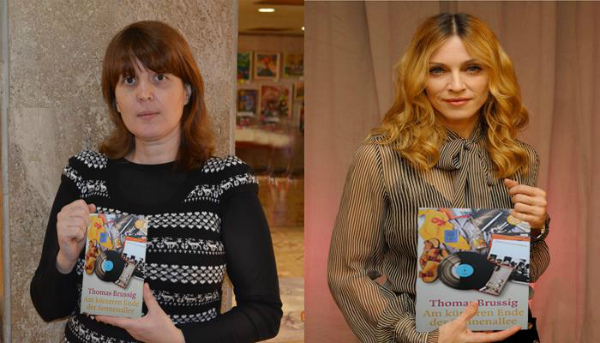 Новелу Томаса Бруссіга прочитали відома американська акторка Кейт Хадсон та бібліотекар ХОУНБ ім. Олеся Гончара Олександра Велика. Вони обидві артистичні та гарні жіночки, тому, не задумуючись, можна сказати, що вони схожі на керівницю танцювального гуртка пані Шлоот. Фарбована блондинка, повної статури, на тонесеньких шпильках граційно кружляла по залу у супроводі двох «голубків», як їх називав Міха Куппіш. Сам Міха вперше побачив хлопців нетрадиційної орієнтації на танцювальному майданчику, ці красунчики були партнерами пані Шлоот. Поки один із «голубків» танцював у парі з пані Шлоот, другий блискав на них ревниво. Пані Шлоот не одразу здогадался, чому цього сезону у клубі було досталь хлопців і кожній дівчині була пара для парного танцю. Хочете знати у чому проблема? Читайте новелу Т. Бруссіга та дізнаєтесь усі новини танцювального гуртка на Сонячній алеї.
